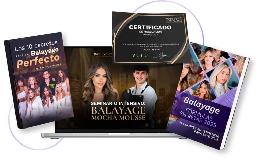 Si eliges el paquete PREMIUM, también recibirás los bonos: el Seminario Mocha Mousse (grabado) y el ebook “10 pasos para un Balayage Perfecto”.